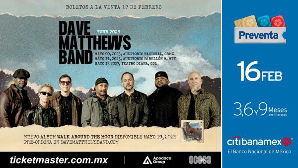 Pocas son las bandas que pueden presumir una lista de logros como aparecer en el número uno de la lista Billboard, haber ganado un Grammy por “Mejor Actuación de Rock” (sin mencionar otras 28 nominaciones en diferentes premios internacionales), ser una de las bandas con más discos y entradas vendidas en la historia, tener una carrera musical de más de de tres décadas y seguir siendo un gran referente en la escena del rock… esta es la historia de Dave Matthews Band.