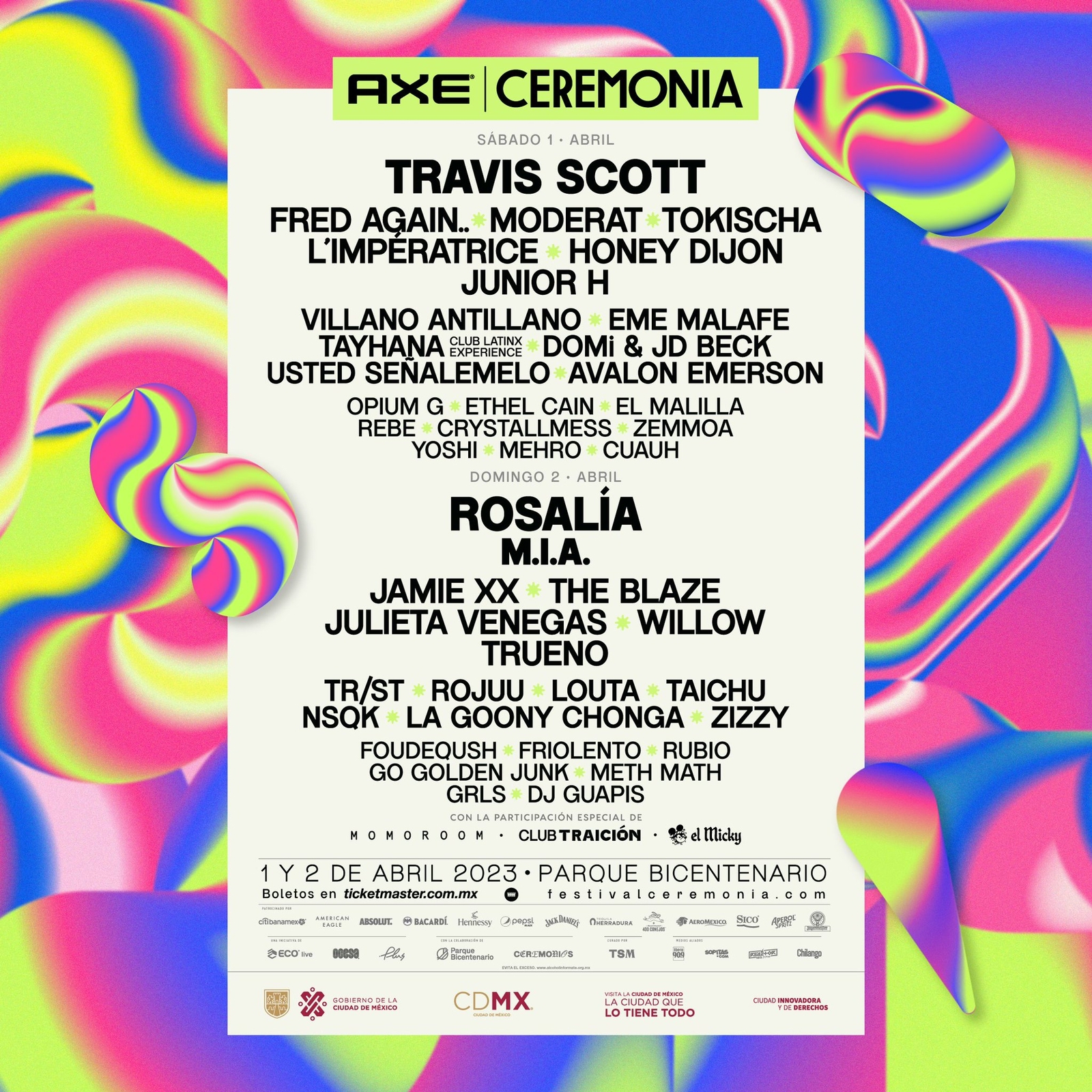 Acá te dejamos el Line Up completo del festival dónde desfilan figuras como M.I.A, Moderat, Rosalía, The Blaze, RUBIO, TR/ST, Travis Scott y más.