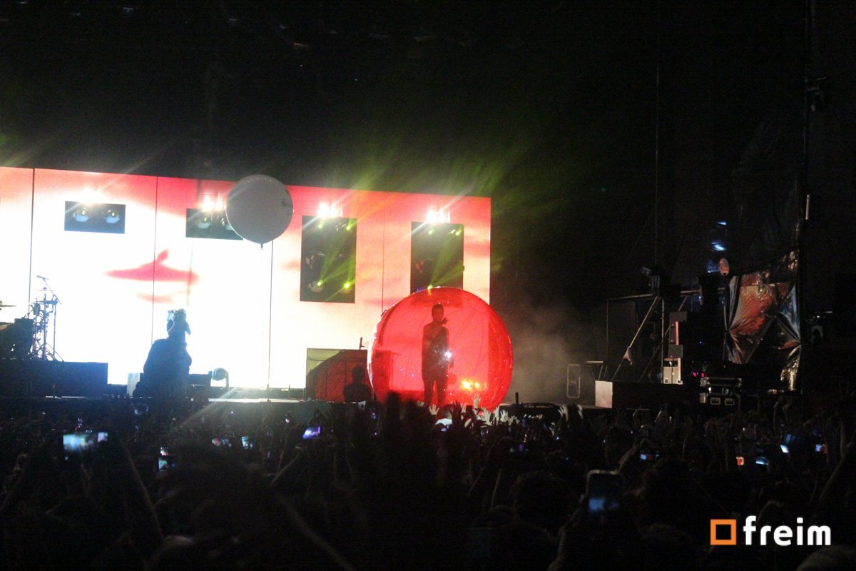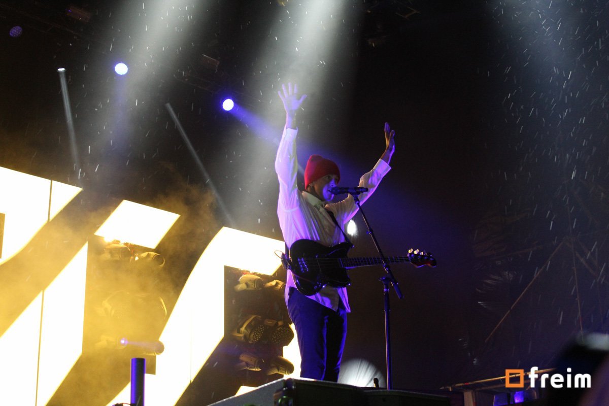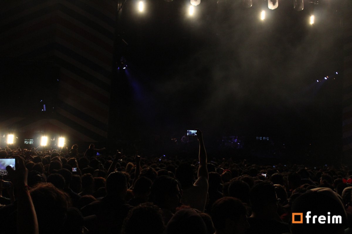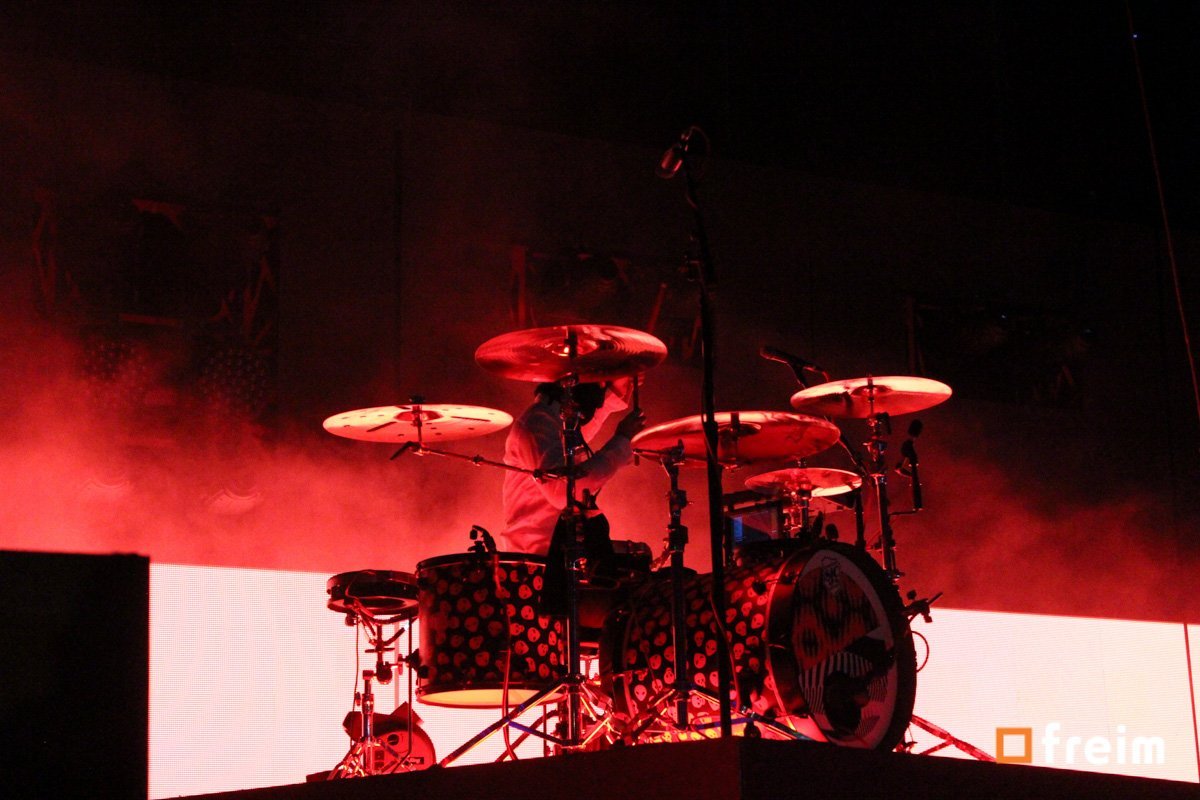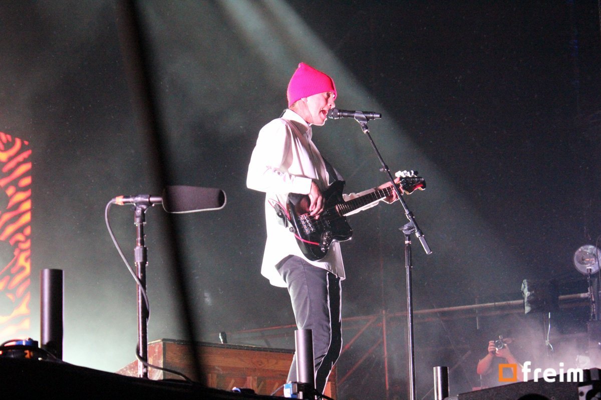 El turno de Twenty One Pilots había llegado, desde el inicio se percibía una sensación de euforia, ya estaban en las últimas horas del concierto y eran los grupos en que la mayoría tenía interés. Por todos lados se veía gente bailando, cantando las canciones, el grupo tenía como presentación visual; un conjunto de luces que dejaban una sensación inquietante, luces rojas, moradas, verdes, que combinadas con las canciones, harían sumamente difícil estar ahí y parar de bailar.