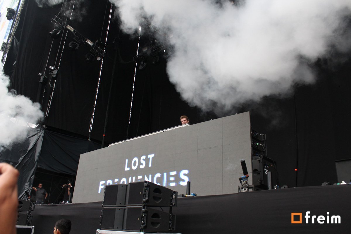 Pasando el momento de muchas oportunidades para las relaciones cálidas, empieza a crearse la sensación del clímax, fragmento del festival en el que los grupos empiezan a durar una hora en el escenario; y para iniciar esta etapa se presentó Lost Frequencies, quien a pesar de estar cubierto en gran medida, se mostraba su presencia detrás una gran. Música electrónica que puede iniciar tranquila y terminar dejándote con una sensación de ansiedad por bailar sin parar, aquí se usaron recursos en gran medida de humo y fuego que podrías ver claramente desde cualquier parte que visualizaras el escenario.