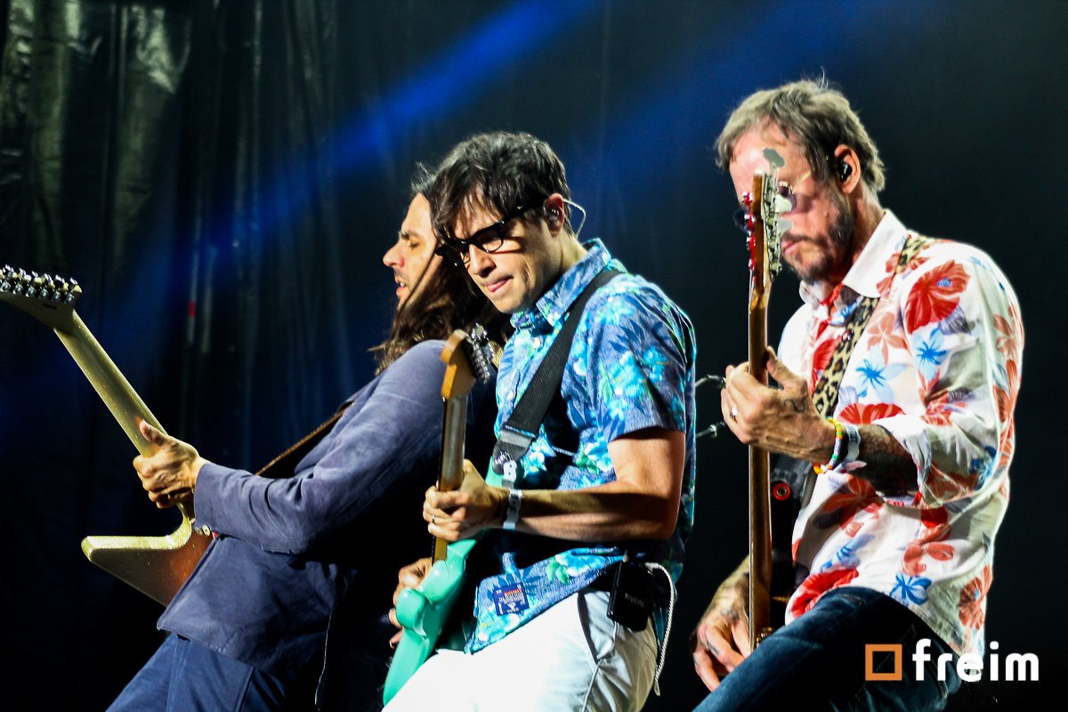 Weezer en su primera presentación en Monterrey, nos permitió escuchar My Name Is Jonas, The Sweater Song, Pork And Beans, Island In The Sun, Buddy Holly. Además de estar hablando en español, se aventó una así, ¿Quién como tú?