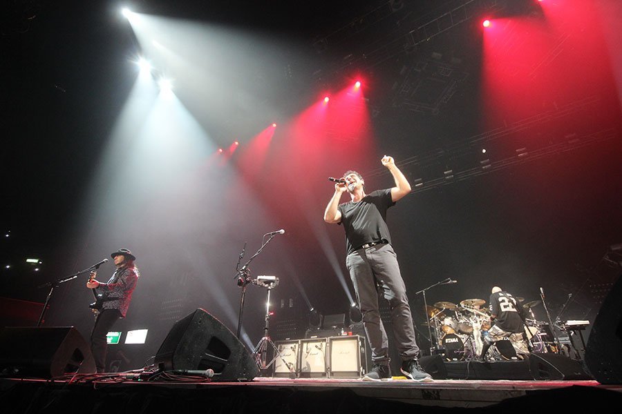 La banda angelina de origen armenio System Of A Down, se presentó anoche con gran éxito en el Palacio de los Deportes del Distrito Federal como parte de la gira en la que también cumplieron con presentaciones en Brasil, Argentina y Colombia. Apenas había terminado de tocar la banda abridora Apolo, cuando sobre las 9:15 p.m. con la gente ya impaciente apareció SOAD interpretando con mucha fuerza los temas “I-E-A-I-A-I-O”, “Suit Pee”, “Attack”, “Prision Song” y “Know”. El concierto estuvo balanceado en cuanto a la cantidad de temas tocados por álbum, esto debido a que la gira que actualmente realiza SOAD no tiene como motivo un nuevo álbum, poco tardaron caer temas emblemáticos como “Aerials”, la cual fue tocada más rápido que la versión de estudio.